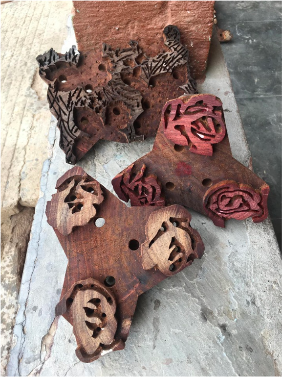 手蓋印(Hand Block Printing)是印度古老的工藝,已有千年以上的歷史,是利用手工雕刻的木製印章,組成圖樣蓋印織物的技法。