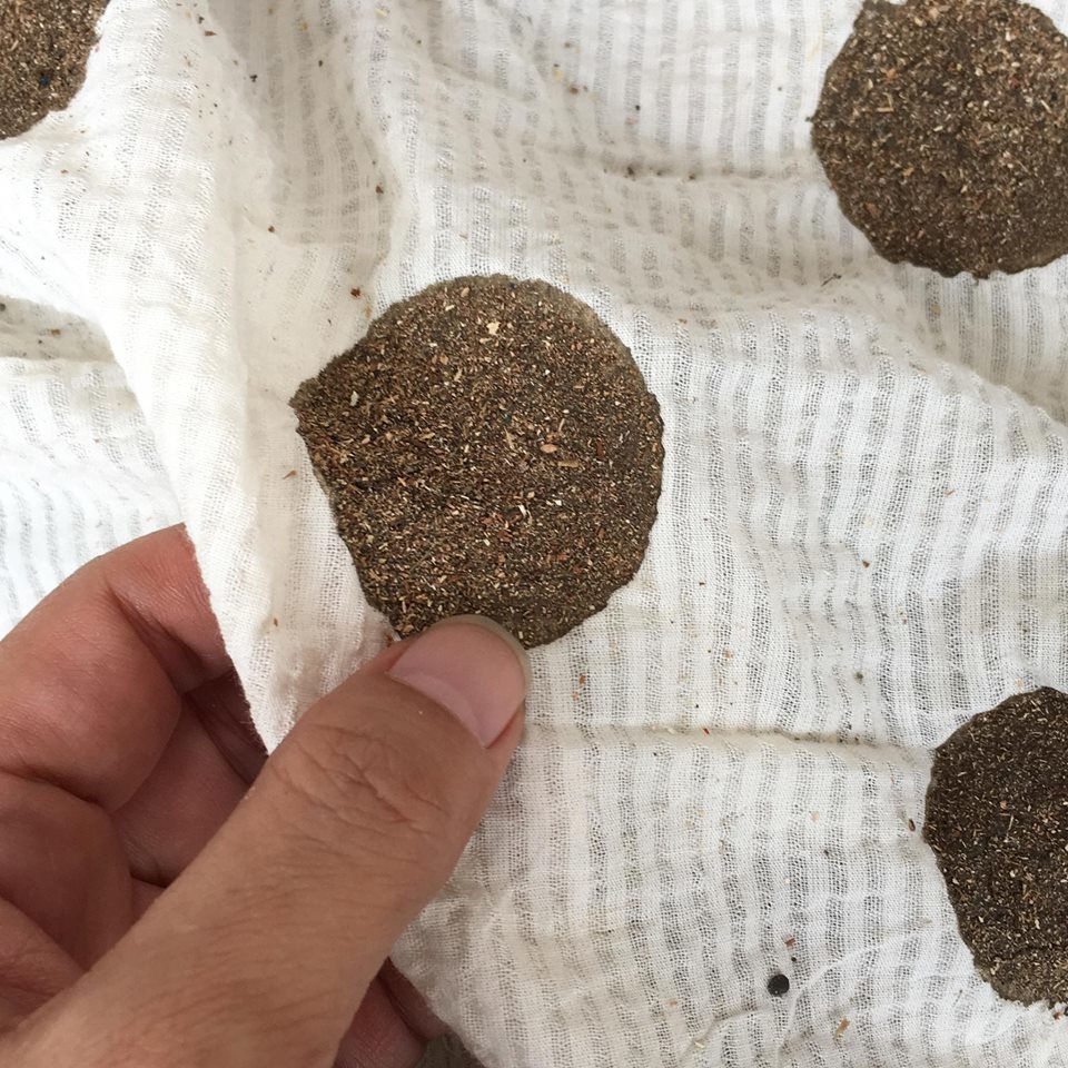 Dabu為藍染常用的技法——把布面上不想被染色的地方,以黑土、麥粉、關華豆膠(Guar gum)及萊姆汁的混合物覆蓋,再將浸到染缸中,就能創造出留白的效果。