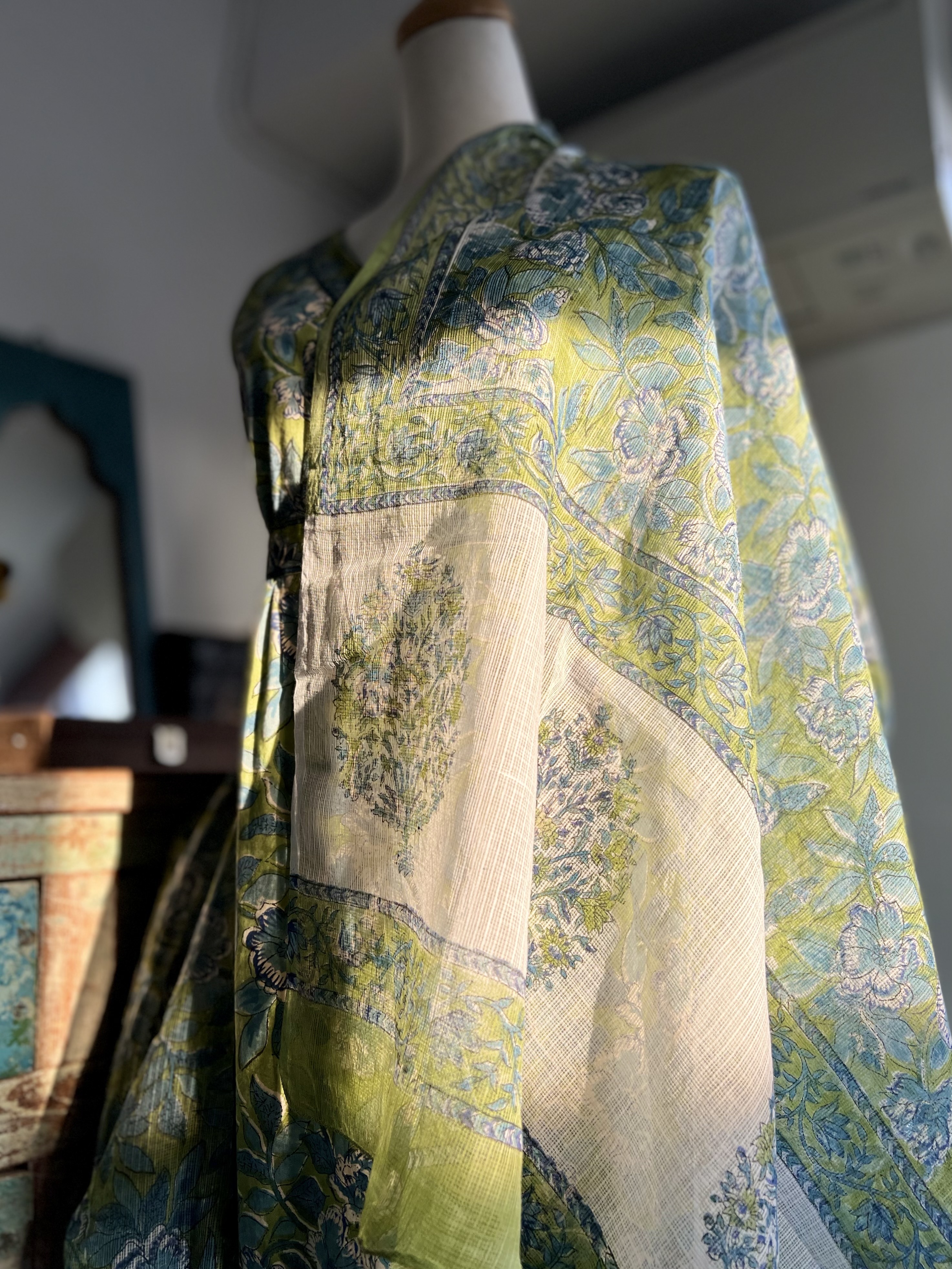 V字交襟領口,中高腰細膩滾邊花